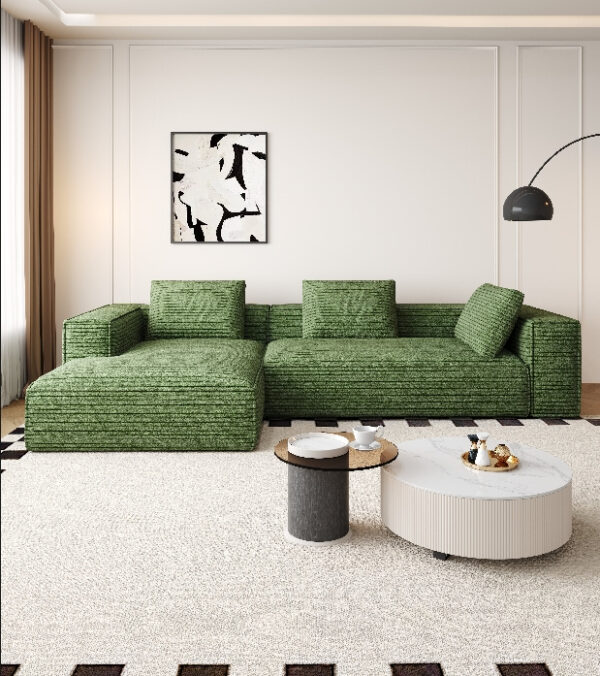 This 3-seater modular sofa combines modern design with exceptional comfort, making it a versatile addition to any living space. Upholstered in soft corduroy fabric, it offers a cozy and stylish seating experience. The modular design allows for flexible configurations, adapting to various room layouts and personal preferences. Its compact size makes it ideal for apartments, small living rooms, or cozy corners. The sofa’s sturdy construction ensures durability, while its neutral color palette complements a wide range of interior styles. Easy to assemble and maintain, this sofa provides both functionality and aesthetic appeal.